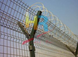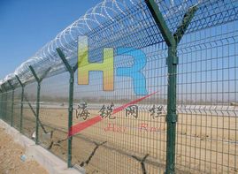 機場護欄網又稱作“Y型安全防御護網”,由Y型支架立拄,加強型焊接片網,安全防盜連接件和熱鍍鋅刀片刺網組成,是強度和安全防御性級別很高的圍界護欄網產品。被廣泛應用在機場、軍事基地等高安全場所。這種護欄網的突出特點就是美觀實用、安全性高、防攀爬能力好,網體連接方式采用特制SBS緊扣件,有效防止人為的破壞性拆卸,橫向四道折彎加強筋,使網面強度顯著增加。